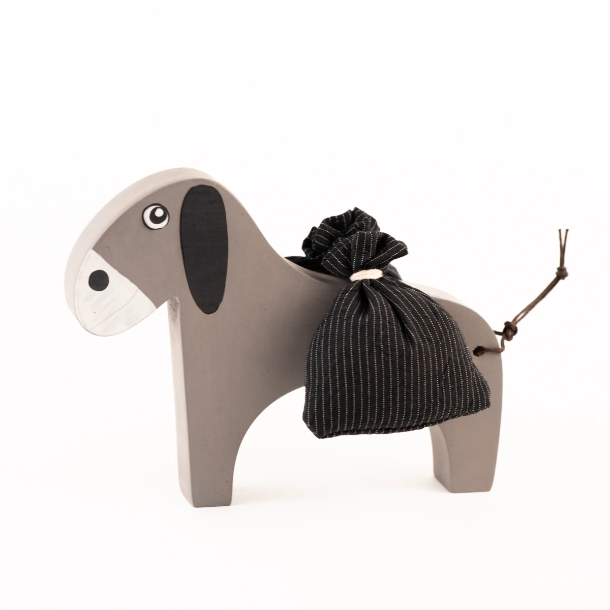 Oslík je známý svou houževnatostí – říká se, že dokáže unést až 300 kg! Ten náš to kvůli své velikosti asi nezvládne, ale i tak je to pořádný držák. Na zádech si nese malý uzlíček a hledá nové místo, kde bude dělat radost a statečně stát na stráži. K oslíkovi Rudlíkovi dokonale lícuje taky třeba kočičí duo v čele s růžovou číčou, medvěd nebo ježek Bodlinka s muchomůrkou - všechny dřevěné kámoše a kámošky najdete v sekci Dětem! Je ručně vyrobený zaměstnanci s mentálním hendikepem v jihočeské dílně v Soběslavi.