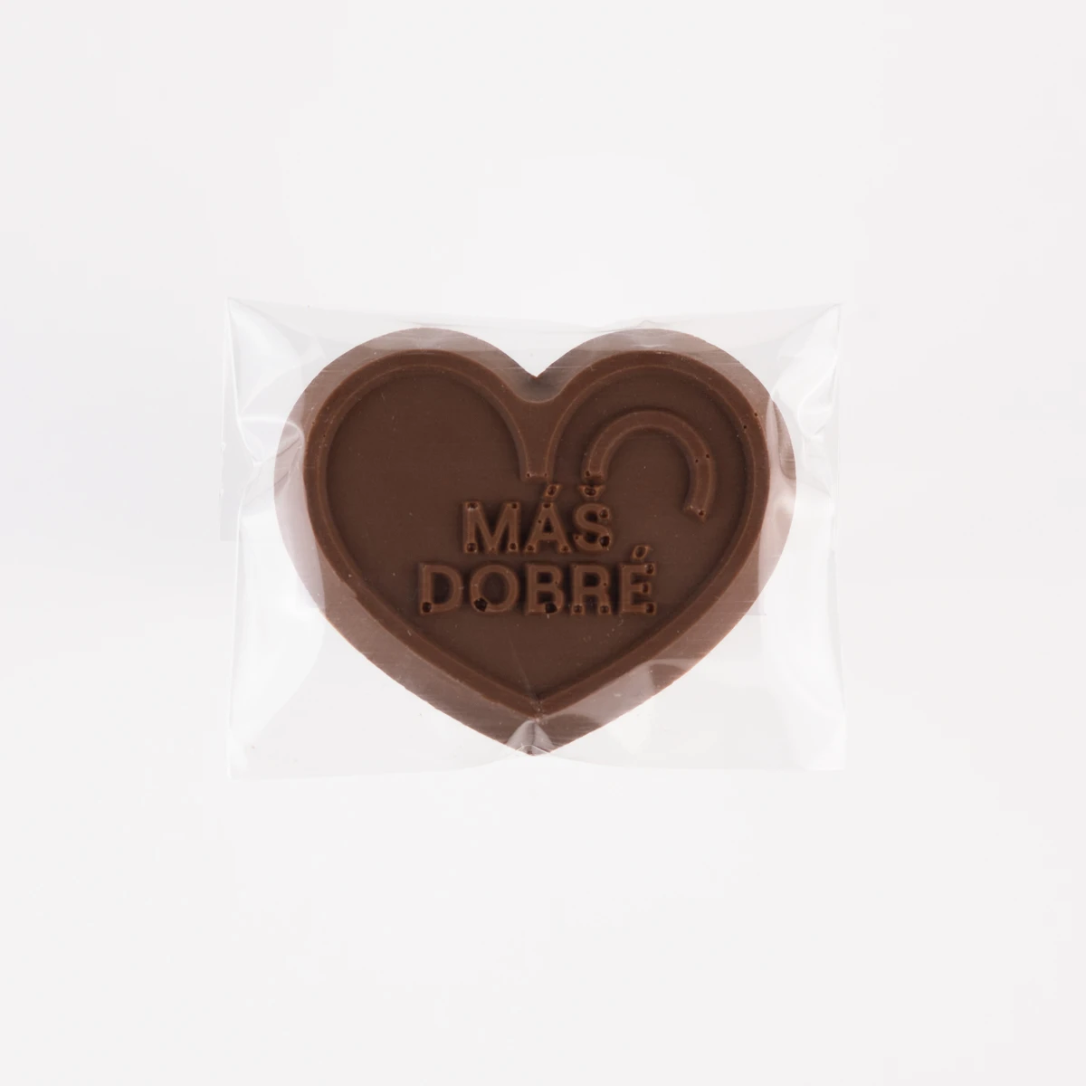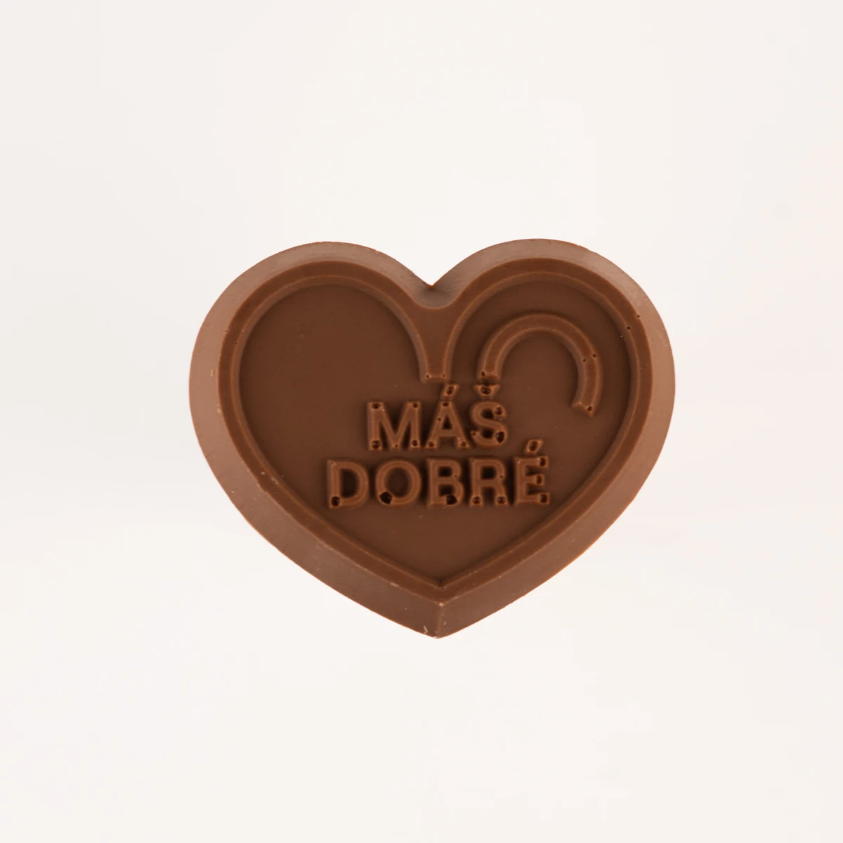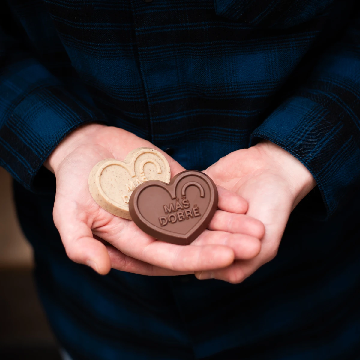 Znáte ten nejsladší způsob, jak někomu říct, že má dobré srdce? Zkuste to říct naším čokoládovým srdíčkem! Nechali jsme si totiž vyrobit srdíčkovou formu s originálním reliéfním nápisem, který potěší opravdu každého obdarovaného a o to jde - jak sdělit blízkému člověku, že si ho vážíme? U nás to můžete říct hravě - a navíc každé srdíčko z této dokonalé mléčné čokolády je odléváno opravdu ručně, žádný stroj (ani AI :-) nenahradí lidskou péči nad každičkým kouskem čokolády. A bacha - máme v nabídce taky variantu z bílé čokolády se skořicí! Výrobou čokolád dáváme práci lidem se zdravotním a sociálním znevýhodněním díky sladké spolupráci se sociálním podnikem ze severu Čech, konkrétně z Krásné Lípy, kde se na malebném náměstíčku ukrývá čokoládové království pod názvem Mana čokoládovna. A my s tímto sociálním podnikem spolupracujeme už od dob našeho rozjezdu, od r. 2020. A není to jen #spoluprace, ale radost a přátelství.