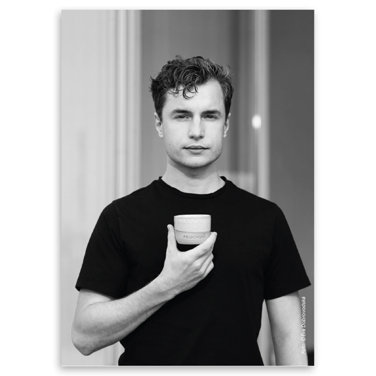 Oskar Hes na fotografii drží hrníček s nápisem Pochopení, který pochází z naší autorské edice hrníčků s názvem Člověčí hodnoty, které pro nás vyrábějí v chráněné keramické dílně Charity Opava. Ty si můžete koupit buď zvlášť nebo jako čtveřici na našem e-shopu tady: