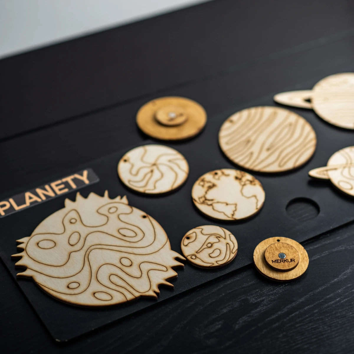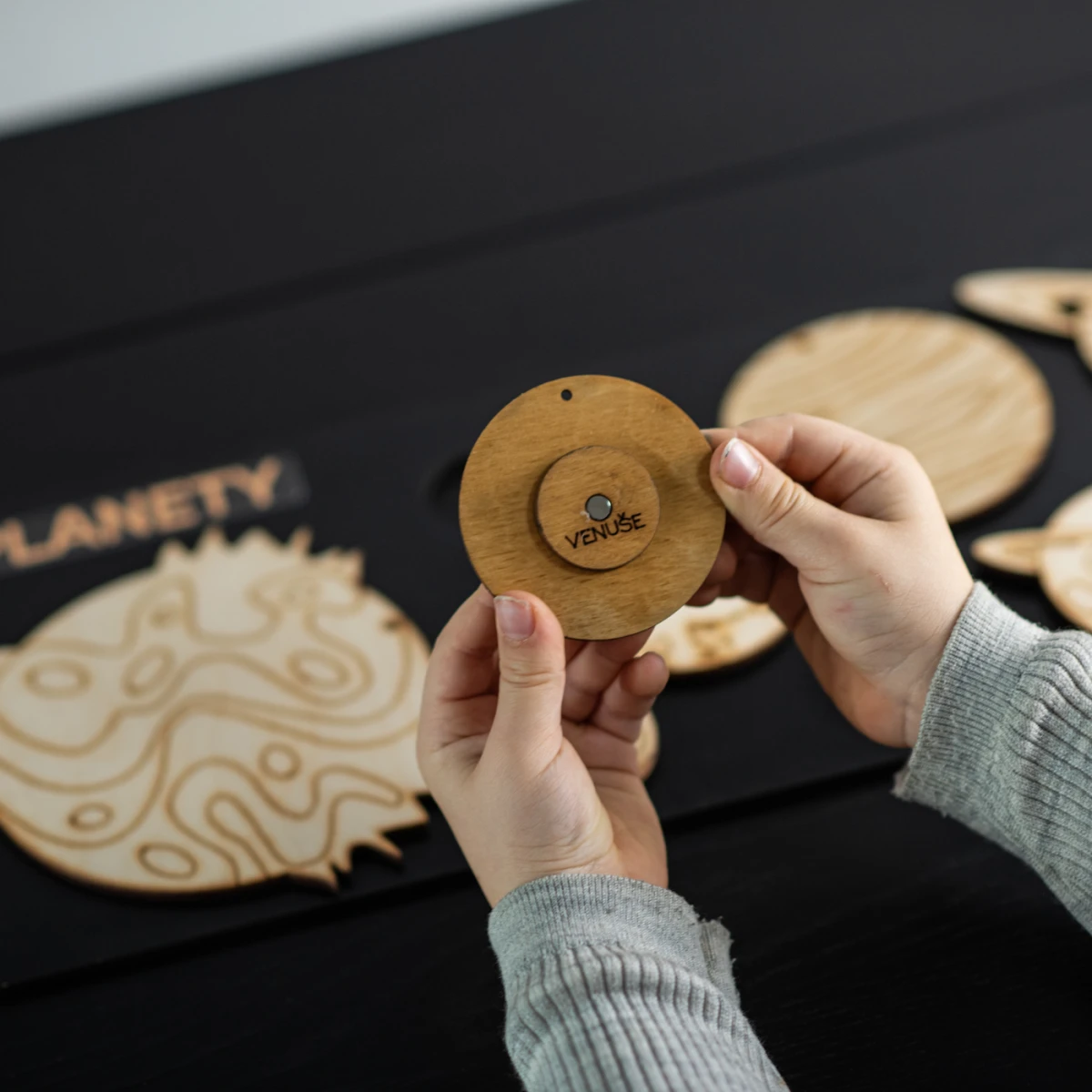 Vlastní vesmír na dosah ruky! Můžete si ho vymalovat a tím vytvořit svou unikátní sluneční soustavu. A poté už stačí pověsit do prostoru nebo díky magnetu vystavit na ledničku či kamkoliv, kde chcete mít oběžnou dráhu. Každý kousek je precizně vyroben z březové překližky v integračním sociálním podniku na Liberecku, který zaměstnává především osoby se zdravotním postižením. Tato dílna dává lidem nejen práci, ale i podporu v osobním životě.
